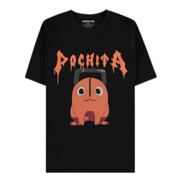 • 🧡 Design: Pochita in primo piano con scritta “Pochita” effetto gocciolante