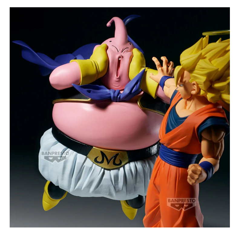 La Match Makers Majin Buu (Prima Forma) vs Son Goku Super Saiyan 3 realizzata da Banpresto celebra uno degli scontri più intensi della saga di Dragon Ball Z, con protagonisti Goku nella trasformazione Super Saiyan 3 e Majin Buu nella sua prima forma.