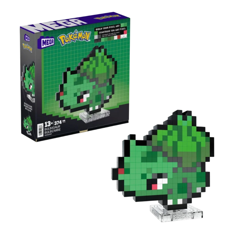 Il Mega Construction Set Bulbasaur Pixel Art è un divertente set di costruzioni Pokémon che permette di ricreare Bulbasaur in un originale stile pixel art.