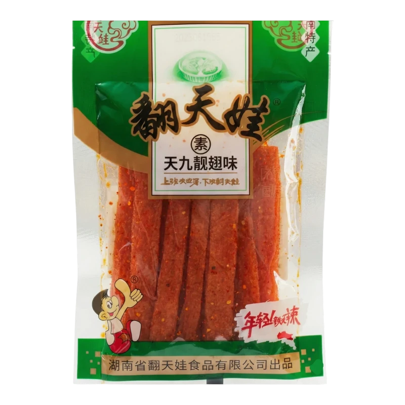 Scopri il sapore unico dei Fan Tian Wa Latiao al gusto pollo, uno snack di soia speziata ispirato al celebre street food cinese. Le morbide strisce marinate offrono la tipica consistenza chewy e soddisfacente che rende i latiao così amati dagli appassionati di snack asiatici.